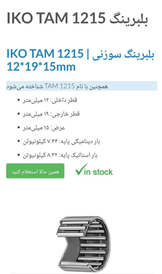 رولبرینگ ته بسته ژاپنی IKO TAM 1215 سایز 12*19*15mm